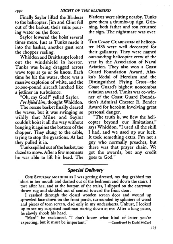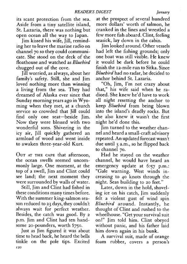 Dramas in Real Life® were a Reader's Digest staple. This one, which began as a rough draft by a reporter on a tiny Alaska daily, scored exceptionally high in our reader poll. Its secret: meticulous re-interviewing, which produced the kind of sensory details that can give nonfiction the power of fiction.